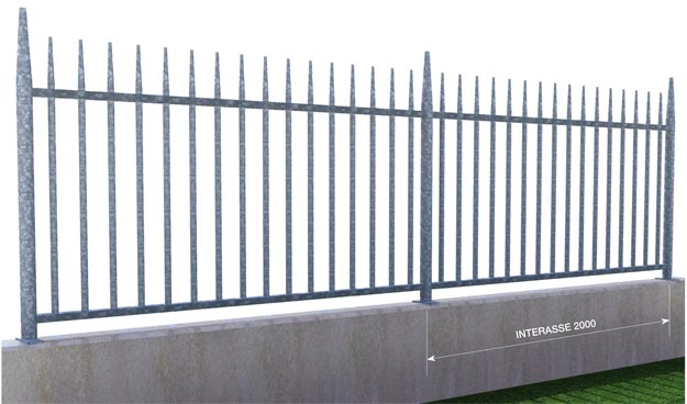 La tramatura affusolata si sviluppa fitta e si estende verso l’alto raggiungendo una notevole altezza. Il modello CANGRANDE è studiato appositamente per ambienti che necessitano la massima sicurezza.Questa recinzione è formata da pannelli modulari composti da profili tubolari verticali la cui estremità è rastremata a forma di cono, passanti e saldati a correnti orizzontali a U. Le piantane sono in tubo, anch'esse rastremate a cono in sommità, e dotate di apposite staffe per il fissaggio dei pannelli mediante bulloni in acciaio inox. La Cangrande è completata da cancelli marcati CE ad un'anta, due ante e scorrevoli. Questa recinzione è adatta in svariati contesti sia residenziali che industriali e laddove sia prevalente l'esigenza di antiscavalcamento.